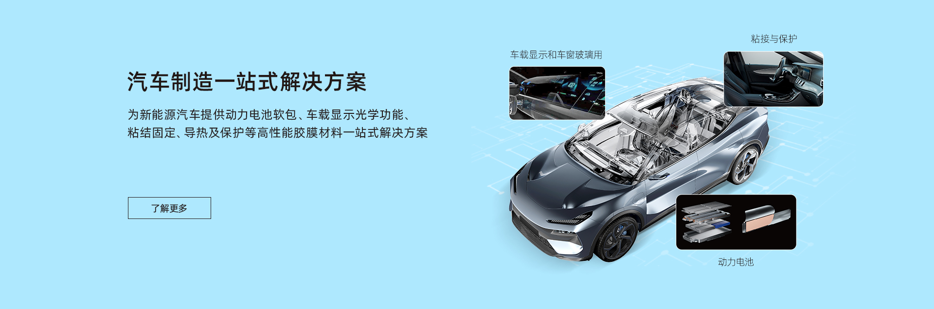 为新能源汽车制造、消费电子、智慧显示等行业客户提供高性能胶膜材料的新材料企业